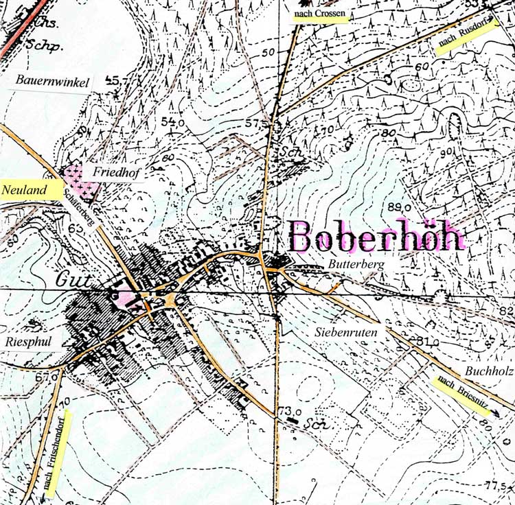 In den 1860er Jahren entstand durch die Braunkohlengrube "Wilhelmine" ein kleiner wirtschaftlicher Aufschwung, der auch die Straßenverhältnisse im Ort und nach Crossen/Oder über den Schäferberg am Friedhof vorbei bis zur Gubener Chaussee verbesserte. Diese Kopfsteinpflasterstraße war bis in die 1990er Jahre noch vorhanden. |