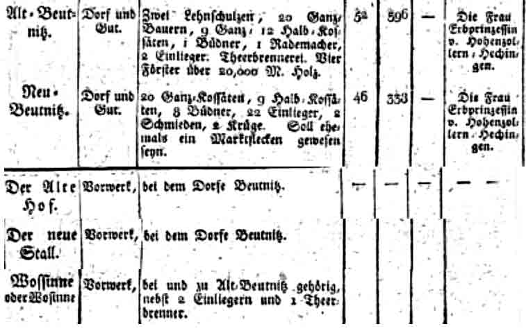 Beutnitz war im Jahre 1806 ein Dorf - es gehörte der Erbprinzessin von Hohenzollem-Hechingen.