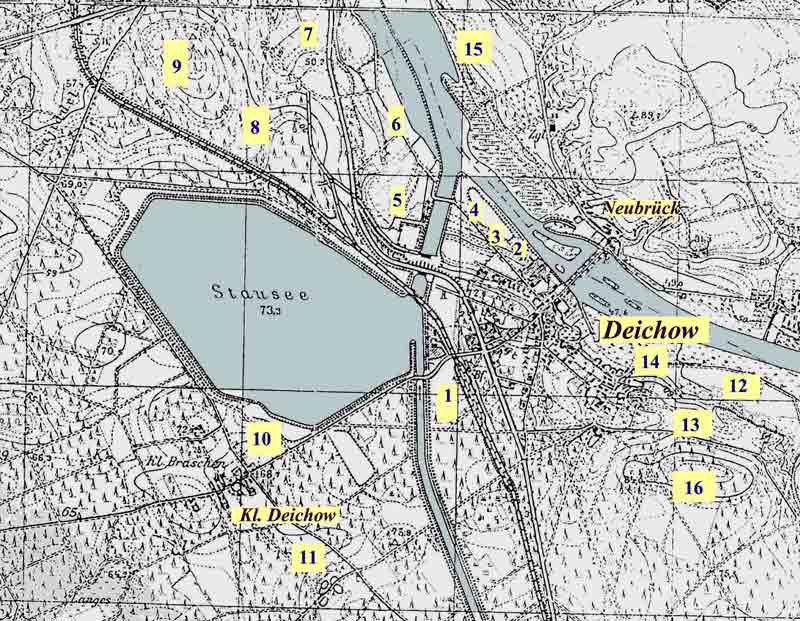 Von Crossen/Oder auf der Reichsstraße 97 in Richtung Guben fahrend, erreicht man Deichow, indem man nach Überqueren der