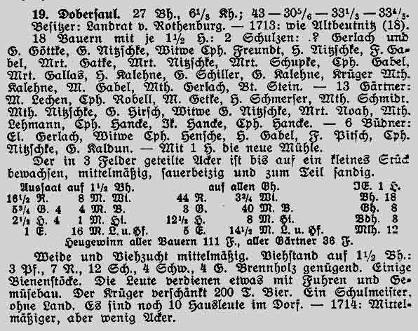 Dobersaul hatte 1806: 73 Feuerstellen u. 596 Einwohner.