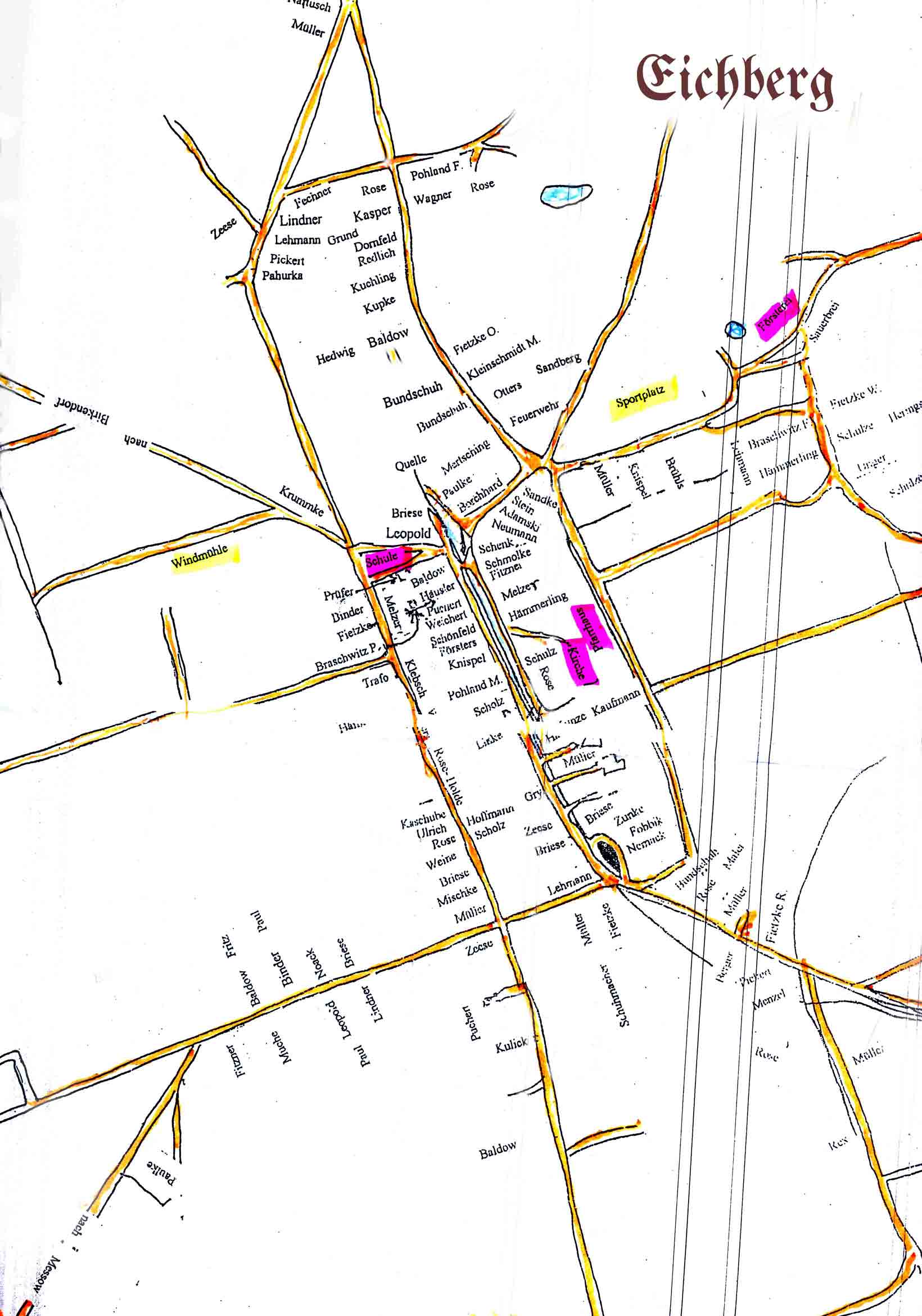 Aufgrund der obigen Bitte wurde von unserer Landmännin Edeltraut Gosdschick ein Ortsplan von Eichberg zugesendet. Leider war