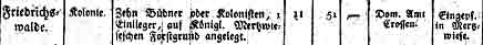 ♦ Friedrichswalde: war eine Kolonie zum Rentamte Crossen.