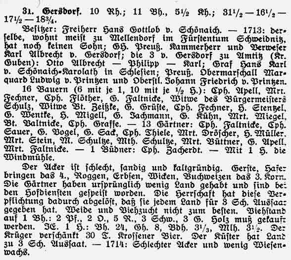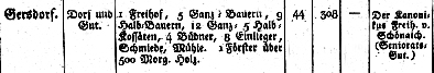 Gersdorf gehörte im Jahre 1806 dem Kanonikus Freiherrn von Schönaich.