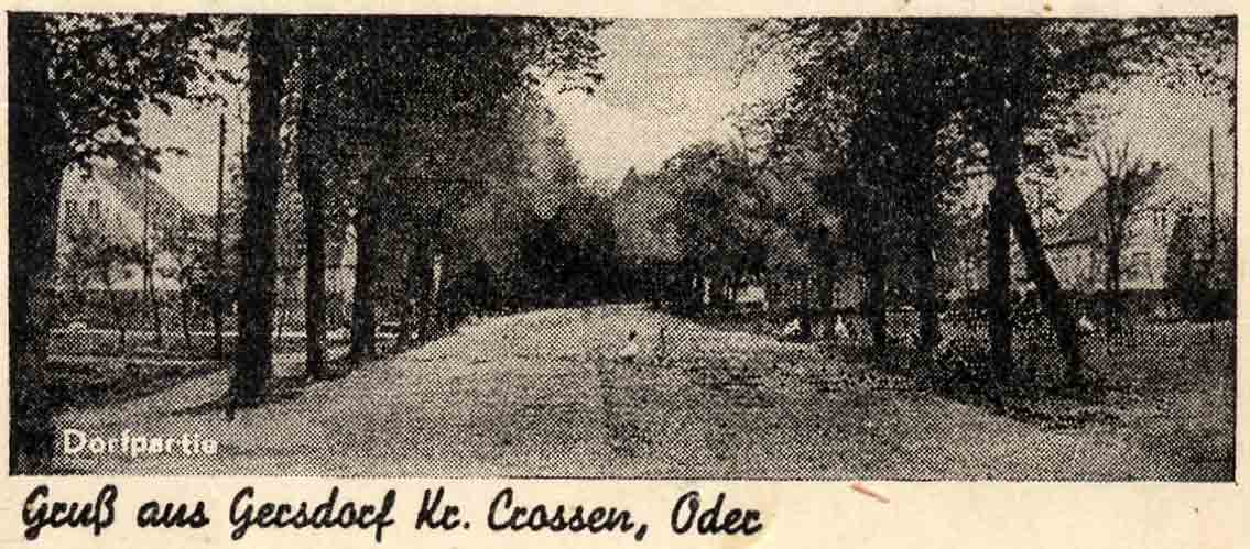 Die Dorfstraße in Gersdorf kreuzte annähernd in Ost-West-Richtung die historische Fernstraße Berlin-Frankfurt-Breslau.