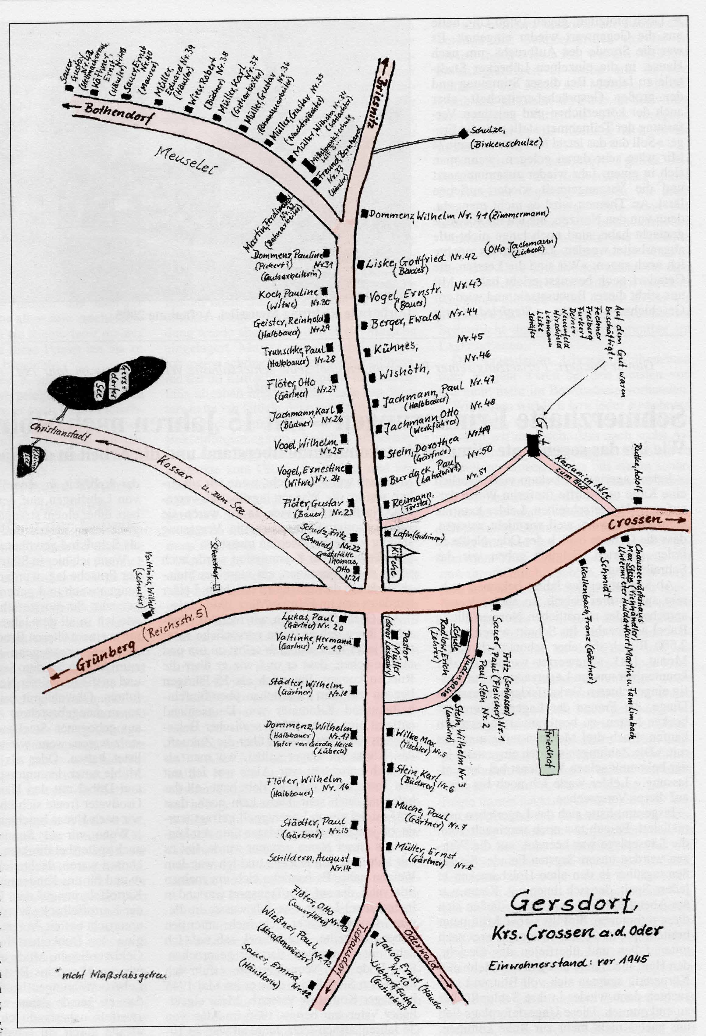 Gersdorf war ein zentrales Dorf im Kreis Crossen. Landsleute aus Gersdorf haben dem Webmaster ein Ortsplan geliefert.