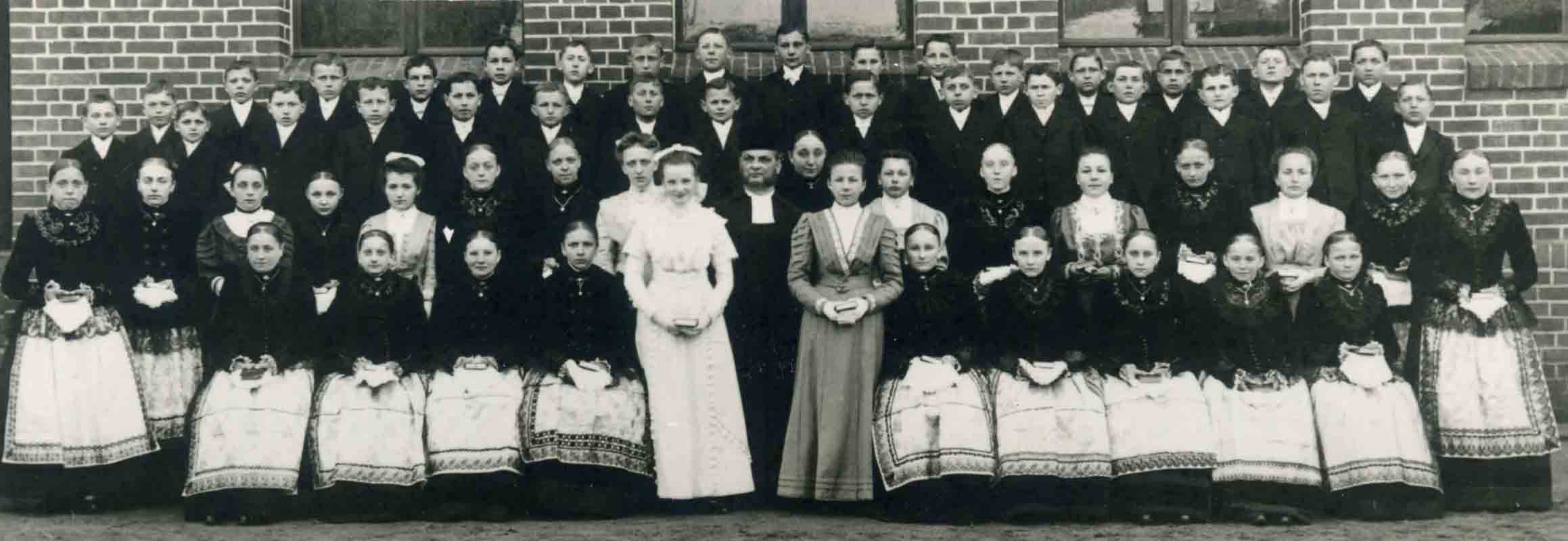 1884 erweiterte man das Schulgebäude und die Küsterwohnung.