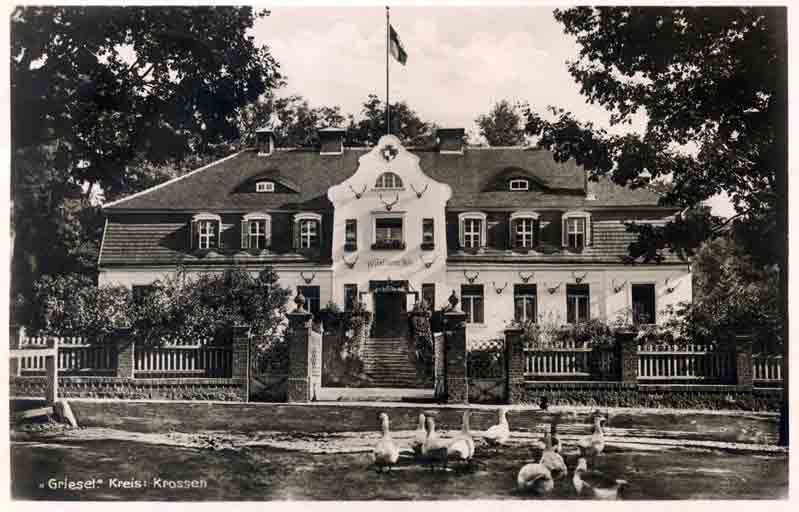![]() ![]() Griesel liegt ca.21 km nordöstlich von Crossen. Von der Crossener Altstadt kommend, nimmt man am "Verkehrskreisel" (am Ende der Bismarckstr.) die zweite Ausfahrt. Sie führt in Richtung Lochwitz und weiter nach Beutnitz, das nach 12 km erreicht wird. Nach weiteren 9 km wird Griesel erreicht. Es gehörte zum Amtsbezirk Griesel, zu dem noch Krämersborn zugeordnet wurde. Das kleine Dorf Griesel im Kreis Crossen gehörte zu den idyllischsten Flecken der Mark Brandenburg, Dichte Kiefernwälder umgaben es, die zu ausgedehnten Spaziergängen einluden. Die erholsame würzige Luft stellte einen Jungbrunnen für Leib und Seele dar. Viele zog es in das herrliche Grieseltal, wo immer wieder andere Seen die Blicke auf sich lenkten, Eine wunderschöne Landschaft, ein anheimelndes Dorf. Meilenweit von Wald umgeben, über 20 Kilometer von den nächsten Städten Crossen und Schwiebus und etwa 10 Kilometer von den Bahnstationen Beutnitz, Rädnitz und Topper entfernt, liegt um die Quellen der Griesel herum, wie ein Gebirgsdörfchen, an Abhängen, zwischen Erlen und Eichen, das stille Heidedörfchen Griesel. Erst 1928 wurde Griesel direkt in das öffentliche Verkehrsnetz einbezogen. Ein Postomnibus aus Schwiebus hatte nun hier seine Endstation und traf zweimal täglich, um 9 und um 17 Uhr, ein. Von Schwiebus aus wurde das Dorf schon vorher postalisch versorgt.