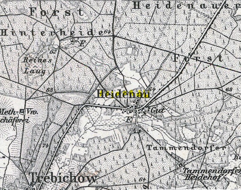 ♦ Heidenau war ein Dorf mit 1 Försterei u. 1 Theerofen; Gutsbesitzer war die Brüder Graf v. Voß in Berlin.