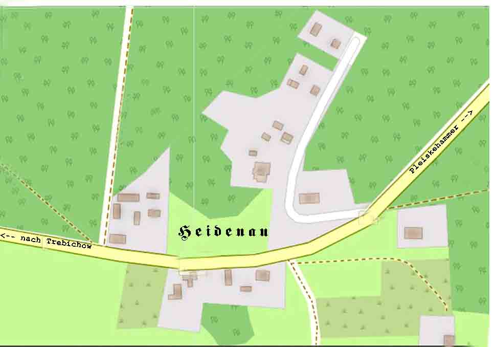 Heidenau - mit 112 Einwohnern zu den kleineren Dörfern des Kreises Crossen gehörend - ist auf der Landkarte leicht zu finden.