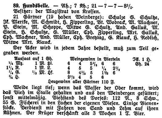Hundsbelle hatte als Besitzer: Magistrat von Crossen.