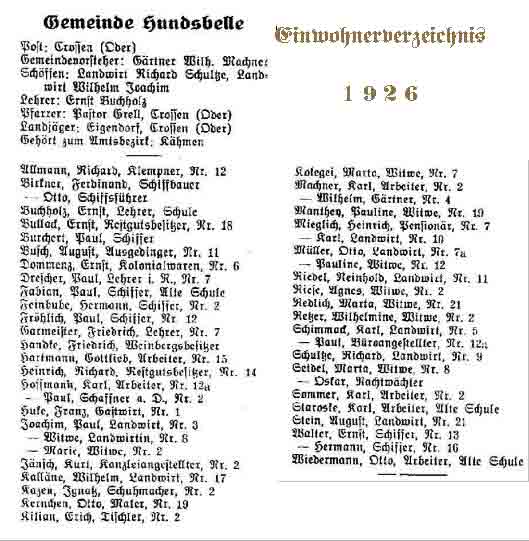 - Hundsbelle war ein Dorf zur Stadt Crossen.