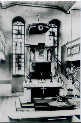 die Aufgänge zu den Emporen enthielten. Die stichbogigen Fenster waren zum großen Teile bleiverglast.