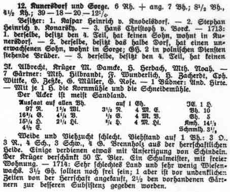 - Sorge: ein Vorwerk zu Kunersdorf - es hatte 10 Häuser und 89 Einwohner.