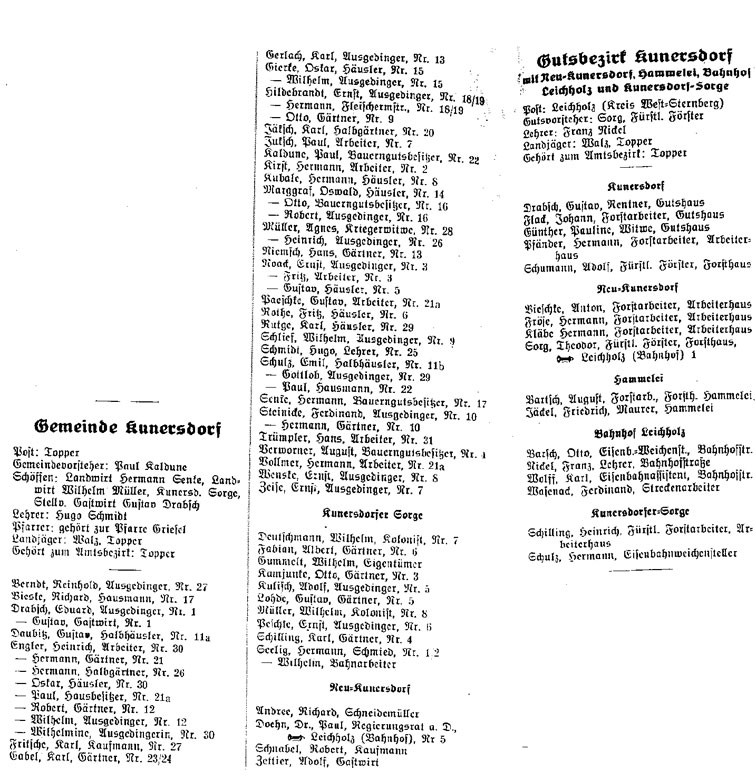 Dem Webmaster stand deshalb für Kunersdorf nur noch das "Einwohnerbuch des Kreises Crossen/Oder -