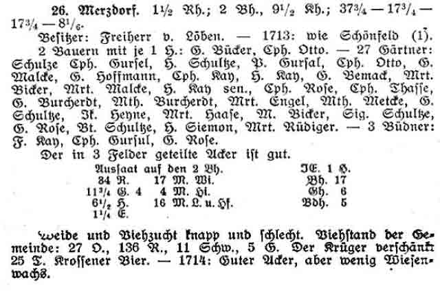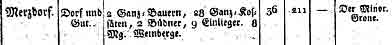 Merzdorf hatte 1806: 36 Feuerstellen u. 211 Einwohner.
