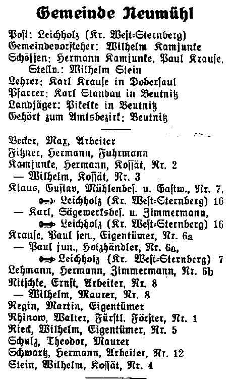 Neumühl hat 114 Einwohner = war eine Kolonie zu Neu-Beutnitz.