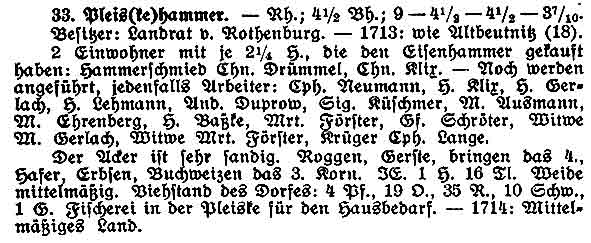 In der Klassifikation 1718/19 wird Pleiskehammer wie folgt erwähnt: