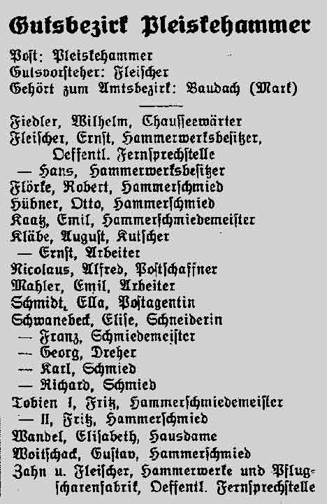Dem Webmaster stand deshalb für Pleiskehammer nur noch das "Einwohnerbuch des Kreises Crossen/Oder - Ausgabe 1926" zur Verfügung.