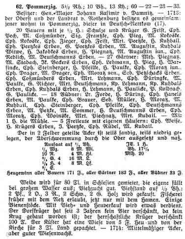 1852 werden genannt: Pommerzig = Dorf mit Rittergut mit folgenden Einwohnern: