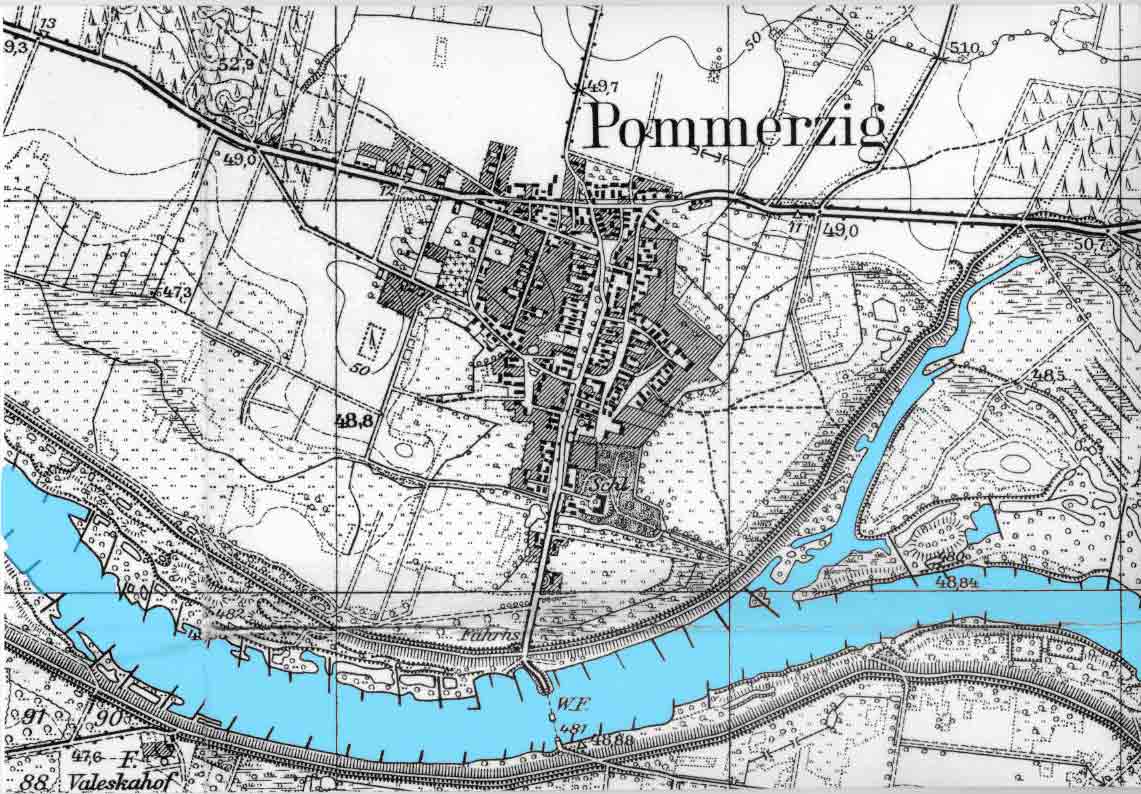 Pommerzig hatte in der ersten Hälfte des 20. Jahrh. eine gute Infrastruktur.