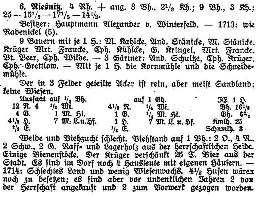 In Riesnitz war um 1715 der Gutsbesitzer der Hauptmann Alexander von Winterfeld.