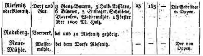Riesnitz war im Jahre 1806 ein Dorf mit Gut - es gehörte den Gebrüdern von Oppen.