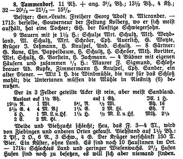 Wie auch bei den anderen Orten verfügen wir für Tammendorf erst mit den Unterlagen der Klassifikation der Jahre 1718/19 über