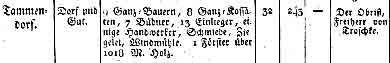 Tammendorf hatte 1806: 32 Feuerstellen u. 245 Einwohner.